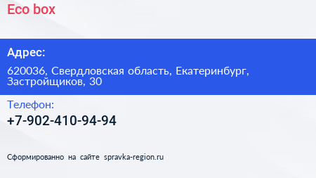 Eco-box по адресу 620036, Свердловская область, Екатеринбург, Застройщиков, 30 в дальнейшем Организация, размещена в следующих категориях: