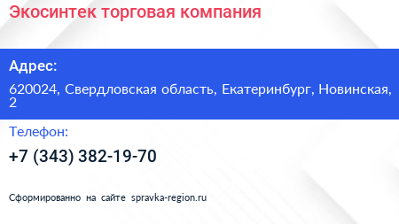 Экосинтек, торговая компания по адресу 620024, Свердловская область, Екатеринбург, Новинская, 2 в дальнейшем Организация, размещена в следующих категориях: