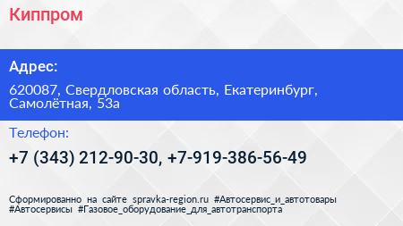 Киппром по адресу 620087, Свердловская область, Екатеринбург, Самолётная, 53а в дальнейшем Организация, размещена в следующих категориях: