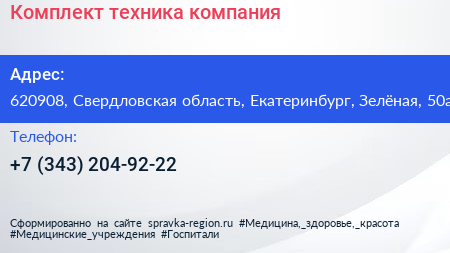 Комплект-техника, компания по адресу 620908, Свердловская область, Екатеринбург, Зелёная, 50а в дальнейшем Организация, размещена в следующих категориях: