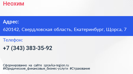 Неохим по адресу 620142, Свердловская область, Екатеринбург, Щорса, 7 в дальнейшем Организация, размещена в следующих категориях: