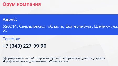 Орум, компания по адресу 620014, Свердловская область, Екатеринбург, Шейнкмана, 55 в дальнейшем Организация, размещена в следующих категориях: