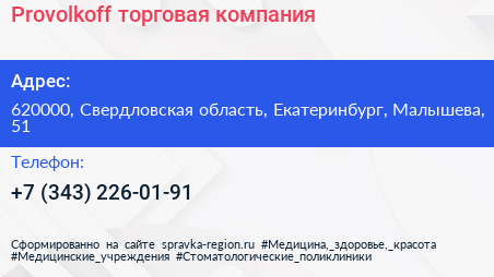 Provolkoff, торговая компания по адресу 620000, Свердловская область, Екатеринбург, Малышева, 51 в дальнейшем Организация, размещена в следующих категориях: