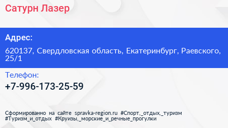 Сатурн-Лазер по адресу 620137, Свердловская область, Екатеринбург, Раевского, 25/1 в дальнейшем Организация, размещена в следующих категориях: