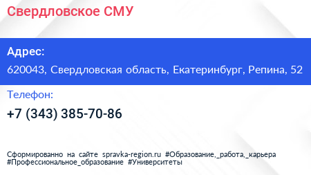 Для связи с организацией воспользуйтесь номером телефона: +7 (343) 385-70-86.