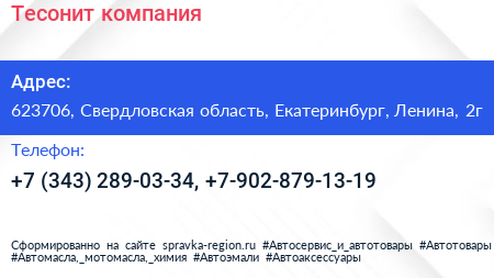 Для связи с организацией воспользуйтесь номером телефона: +7 (343) 289-03-34, +7-902-879-13-19. Пн: c 09:00-18:00, Вт: c 09:00-18:00, Ср: c 09:00-18:00, Чт: c 09:00-18:00, Пт: c 09:00-18:00, Сб: выходной, Вс: выходной, вы можете обратиться в эту организацию.