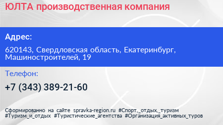 ЮЛТА, производственная компания по адресу 620143, Свердловская область, Екатеринбург, Машиностроителей, 19 в дальнейшем Организация, размещена в следующих категориях: