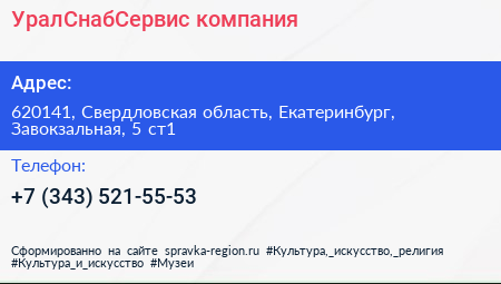 УралСнабСервис, компания по адресу 620141, Свердловская область, Екатеринбург, Завокзальная, 5 ст1 в дальнейшем Организация, размещена в следующих категориях: