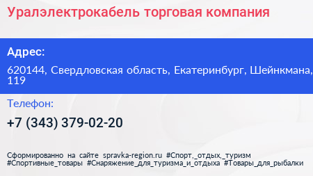 Уралэлектрокабель, торговая компания по адресу 620144, Свердловская область, Екатеринбург, Шейнкмана, 119 в дальнейшем Организация, размещена в следующих категориях: