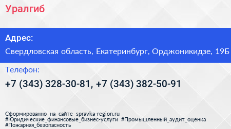 Уралгиб по адресу Свердловская область, Екатеринбург, Орджоникидзе, 19Б в дальнейшем Организация, размещена в следующих категориях: