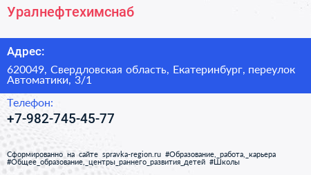 Уралнефтехимснаб по адресу 620049, Свердловская область, Екатеринбург, переулок Автоматики, 3/1 в дальнейшем Организация, размещена в следующих категориях: