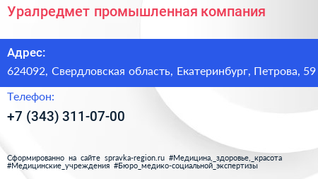 Уралредмет, промышленная компания по адресу 624092, Свердловская область, Екатеринбург, Петрова, 59 в дальнейшем Организация, размещена в следующих категориях: