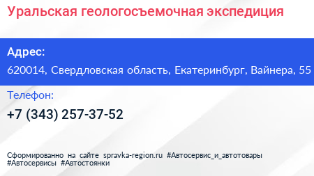 Уральская геологосъемочная экспедиция по адресу 620014, Свердловская область, Екатеринбург, Вайнера, 55 в дальнейшем Организация, размещена в следующих категориях: