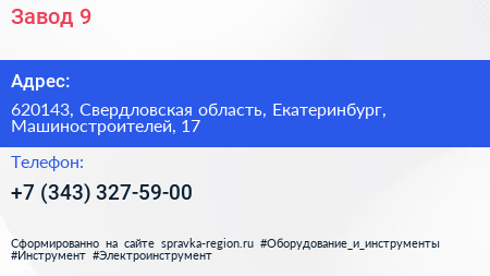 Завод №9 по адресу 620143, Свердловская область, Екатеринбург, Машиностроителей, 17 в дальнейшем Организация, размещена в следующих категориях: