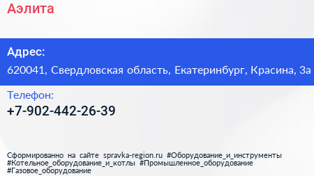 Аэлита по адресу 620041, Свердловская область, Екатеринбург, Красина, 3а в дальнейшем Организация, размещена в следующих категориях: