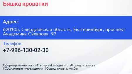 Бяшка-кроватки по адресу 620105, Свердловская область, Екатеринбург, проспект Академика Сахарова, 93 в дальнейшем Организация, размещена в следующих категориях: