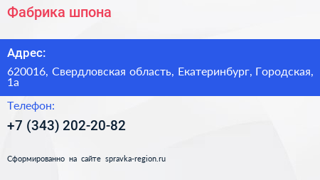 Фабрика шпона по адресу 620016, Свердловская область, Екатеринбург, Городская, 1а в дальнейшем Организация, размещена в следующих категориях: