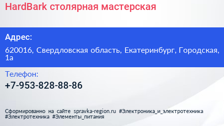 HardBark, столярная мастерская по адресу 620016, Свердловская область, Екатеринбург, Городская, 1а в дальнейшем Организация, размещена в следующих категориях: