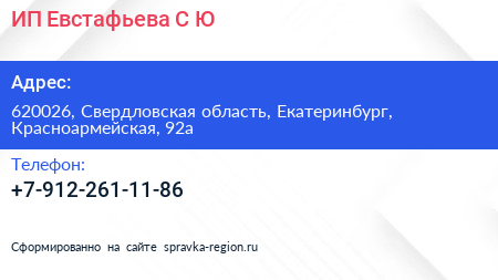 ИП Евстафьева С.Ю. по адресу 620026, Свердловская область, Екатеринбург, Красноармейская, 92а в дальнейшем Организация, размещена в следующих категориях: