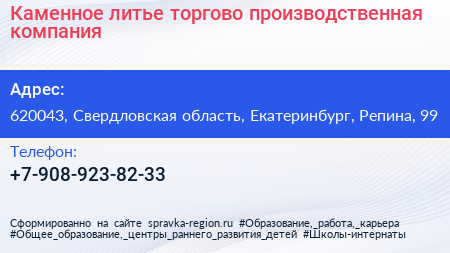 Каменное литье, торгово-производственная компания по адресу 620043, Свердловская область, Екатеринбург, Репина, 99 в дальнейшем Организация, размещена в следующих категориях: