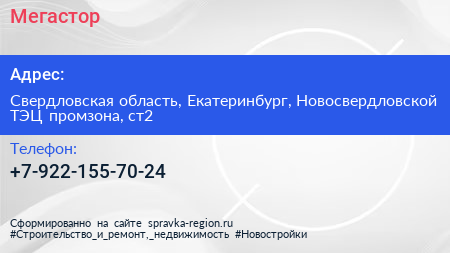 Мегастор по адресу Свердловская область, Екатеринбург, Новосвердловской ТЭЦ промзона, ст2 в дальнейшем Организация, размещена в следующих категориях: