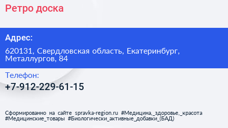 Ретро доска по адресу 620131, Свердловская область, Екатеринбург, Металлургов, 84 в дальнейшем Организация, размещена в следующих категориях: