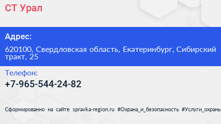 СТ-Урал по адресу 620100, Свердловская область, Екатеринбург, Сибирский тракт, 25 в дальнейшем Организация, размещена в следующих категориях: