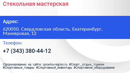 Стекольная мастерская по адресу 620050, Свердловская область, Екатеринбург, Маневровая, 12 в дальнейшем Организация, размещена в следующих категориях: