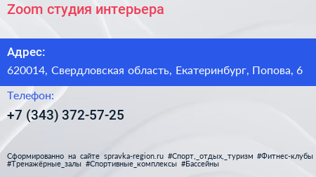 Zoom, студия интерьера по адресу 620014, Свердловская область, Екатеринбург, Попова, 6 в дальнейшем Организация, размещена в следующих категориях: