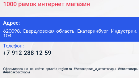 1000 рамок, интернет-магазин по адресу 620098, Свердловская область, Екатеринбург, Индустрии, 104 в дальнейшем Организация, размещена в следующих категориях: