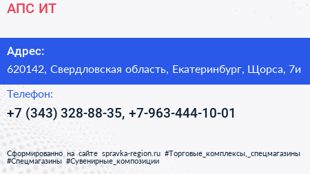 АПС-ИТ по адресу 620142, Свердловская область, Екатеринбург, Щорса, 7и в дальнейшем Организация, размещена в следующих категориях: