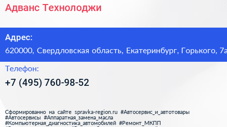 Адванс Технолоджи по адресу 620000, Свердловская область, Екатеринбург, Горького, 7а в дальнейшем Организация, размещена в следующих категориях: