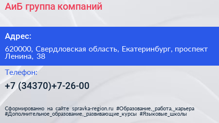 АиБ, группа компаний по адресу 620000, Свердловская область, Екатеринбург, проспект Ленина, 38 в дальнейшем Организация, размещена в следующих категориях: