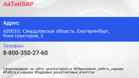 АйТиКВАР по адресу 620010, Свердловская область, Екатеринбург, Конструкторов, 5 в дальнейшем Организация, размещена в следующих категориях: