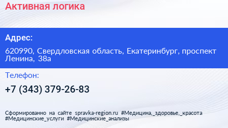 Активная логика по адресу 620990, Свердловская область, Екатеринбург, проспект Ленина, 38а в дальнейшем Организация, размещена в следующих категориях: