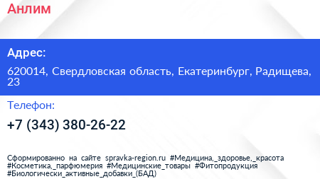 Анлим по адресу 620014, Свердловская область, Екатеринбург, Радищева, 23 в дальнейшем Организация, размещена в следующих категориях: