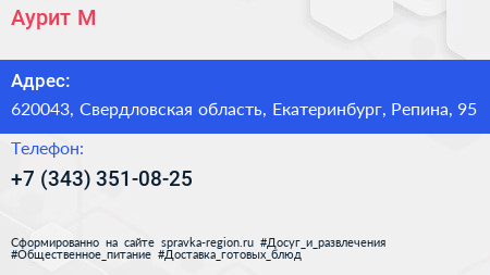 Аурит-М по адресу 620043, Свердловская область, Екатеринбург, Репина, 95 в дальнейшем Организация, размещена в следующих категориях: