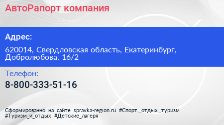 АвтоРапорт, компания по адресу 620014, Свердловская область, Екатеринбург, Добролюбова, 16/2 в дальнейшем Организация, размещена в следующих категориях: