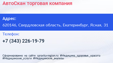 АвтоСкан, торговая компания по адресу 620146, Свердловская область, Екатеринбург, Ясная, 31 в дальнейшем Организация, размещена в следующих категориях: