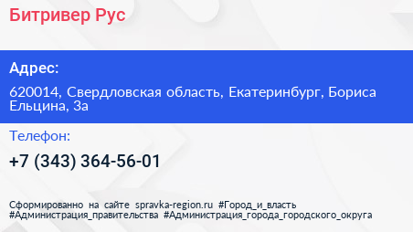 Битривер Рус по адресу 620014, Свердловская область, Екатеринбург, Бориса Ельцина, 3а в дальнейшем Организация, размещена в следующих категориях: