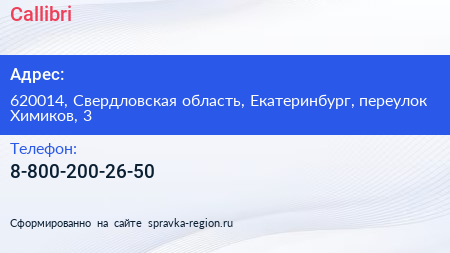 Callibri по адресу 620014, Свердловская область, Екатеринбург, переулок Химиков, 3 в дальнейшем Организация, размещена в следующих категориях: