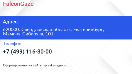 FalconGaze по адресу 620000, Свердловская область, Екатеринбург, Мамина-Сибиряка, 101 в дальнейшем Организация, размещена в следующих категориях: