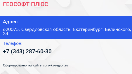ГЕОСОФТ-ПЛЮС по адресу 620075, Свердловская область, Екатеринбург, Белинского, 34 в дальнейшем Организация, размещена в следующих категориях: