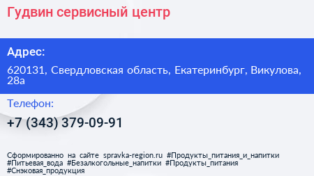 Гудвин, сервисный центр по адресу 620131, Свердловская область, Екатеринбург, Викулова, 28а в дальнейшем Организация, размещена в следующих категориях: