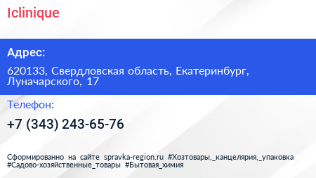 Iclinique по адресу 620133, Свердловская область, Екатеринбург, Луначарского, 17 в дальнейшем Организация, размещена в следующих категориях: