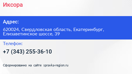 Иксора по адресу 620024, Свердловская область, Екатеринбург, Елизаветинское шоссе, 39 в дальнейшем Организация, размещена в следующих категориях: