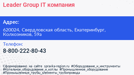 Leader Group, IT-компания по адресу 620024, Свердловская область, Екатеринбург, Колхозников, 59а в дальнейшем Организация, размещена в следующих категориях: