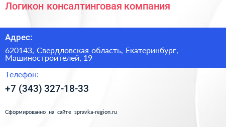 Логикон, консалтинговая компания по адресу 620143, Свердловская область, Екатеринбург, Машиностроителей, 19 в дальнейшем Организация, размещена в следующих категориях: