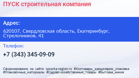 ПУСК, строительная компания по адресу 620107, Свердловская область, Екатеринбург, Стрелочников, 41 в дальнейшем Организация, размещена в следующих категориях: