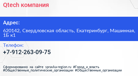 Qtech, компания по адресу 620142, Свердловская область, Екатеринбург, Машинная, 1Б к1 в дальнейшем Организация, размещена в следующих категориях: